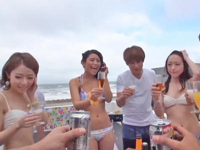 海で真っ赤に火照った素人ギャルたちが、汗だくのままで乱交!超生々しい本番映像でドピュドピ出す!